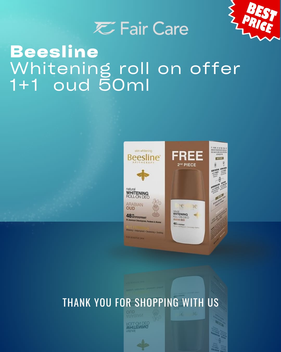 Beesline Whitening Roll-on Offer 1+1 Oud 50ml.. مفعول التركيبة المتطورة بالتفلوز وصمغ النحل وخلاصة لوميسكن بعبير العود الفاخر لتفتيح منطقة الإبط وتوحيد لون البشرة مع منح الجلد حماية فورية وتعطيراً شرقياً فائقاً وحماية ممتدة ضد الروائح الكريهة ومنح الإبط مظهراً نقياً وأكثر نعومة وجاذبية بفعالية