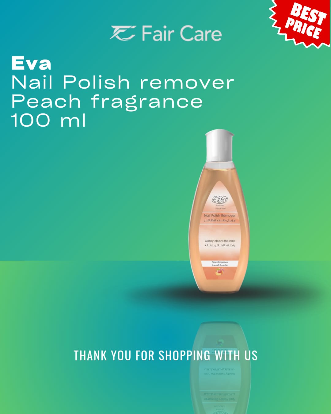 Eva Acetone Nail Polish Remover Peach Fragrance 100ml.. The concentrated acetone effect to remove nail polish and clinging impurities quickly while protecting nails from breakage and giving hands a fresh peach scent and a pure and healthy appearance effectively