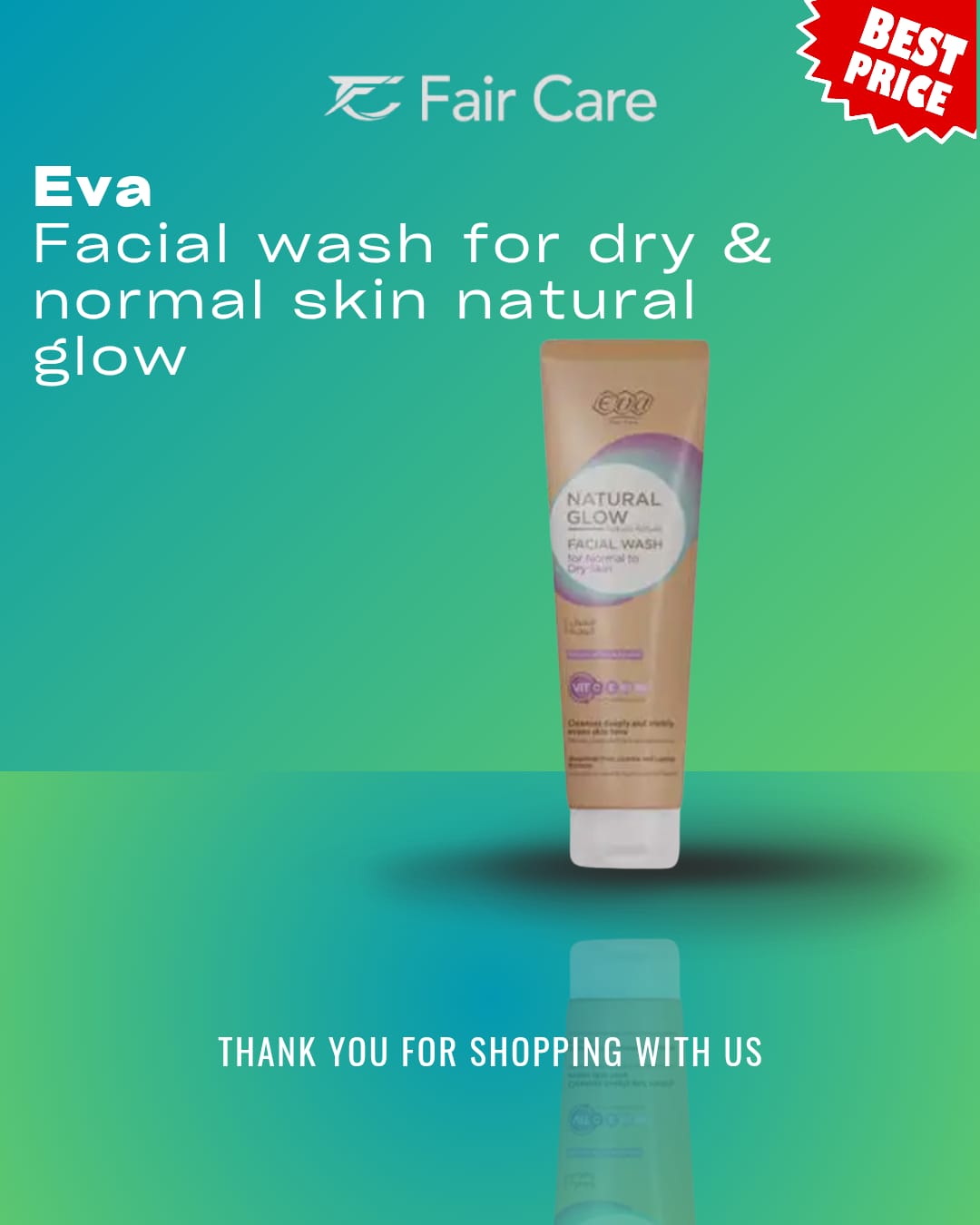 Eva Natural Glow Facial Wash Normal To Dry Skin.. مفعول الفيتامينات المفتحة والترطيب المكثف لتنظيف البشرة بعمق ومنحها نضارة طبيعية بفعالية