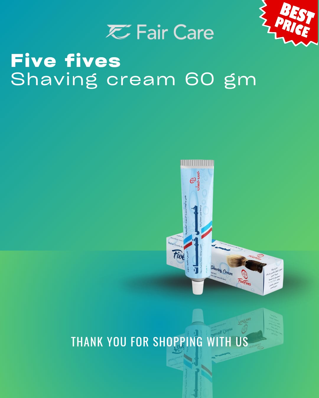 This cream is used regularly with every shave as an essential step in your healthy routine to maintain skin health and protect it from dryness and scratches, thanks to the continuous care effect. The Five Fives shaving formula is a true savior for sensitive skin that needs a touch of suppleness and beauty with simple steps, thanks to its high ability to improve the facial appearance with simple touches. For impressive and lasting results, it is recommended to adhere to its use to ensure the magical effectiveness that highlights the beauty and attractiveness of your look wherever you go.