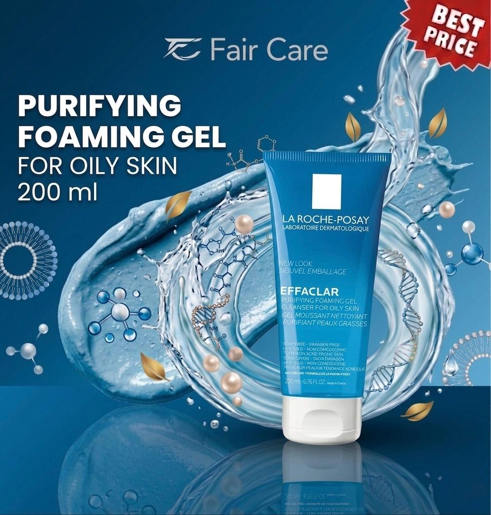 La Roche-Posay Effaclar Foaming Gel 200ml.. مفعول التركيبة المتطورة بمعدن الزنك ومياه الينابيع الحرارية لتنظيف المسام بعمق وإزالة الدهون الزائدة برقة مع منح البشرة نضارة فورية ونعومة فائقة وحماية ممتدة ضد عوامل التراكم الدهني ومنح الوجه مظهراً نقياً وأكثر صفاءً وحيوية بفعالية