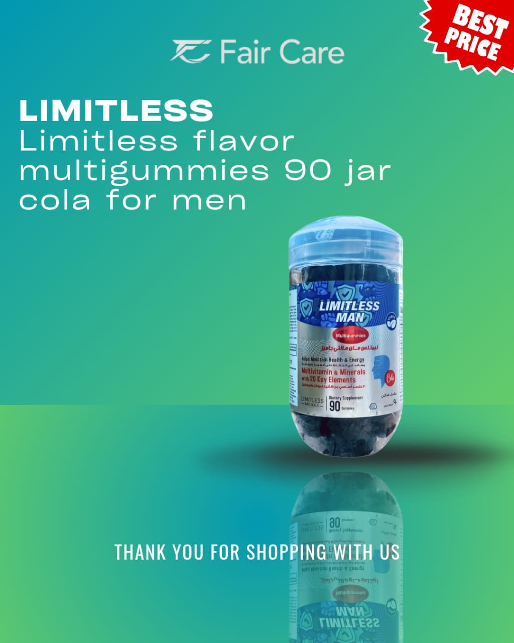تغمرك هذه التركيبة المبتكرة والفريدة بفيض من الطاقة والحيوية بفضل مزيج الفيتامينات والمعادن المصمم خصيصاً لتلبية احتياجات الرجل العصرية ببراعة وتعمل المكونات المختارة بدقة بنكهة الكولا المنعشة والمحببة لتمنحك تجربة يومية ممتعة تجمع بين الفائدة الصحية القصوى والمذاق الرائع لضمان نشاط بدني وذهني مثالي في كل وقت وبفضل شكل "الجاميز" العملي والسهل، يعد "ليمتلس كولا للرجال" الخيار الأكثر ذكاءً للرجل الذي يبحث عن التميز والنشاط الذي يليق بنمط حياته السريع ويناسب طموحاته بكل قوة واحترافية لضمان مظهر صحي ومفعم بالرجولة في كل وقت