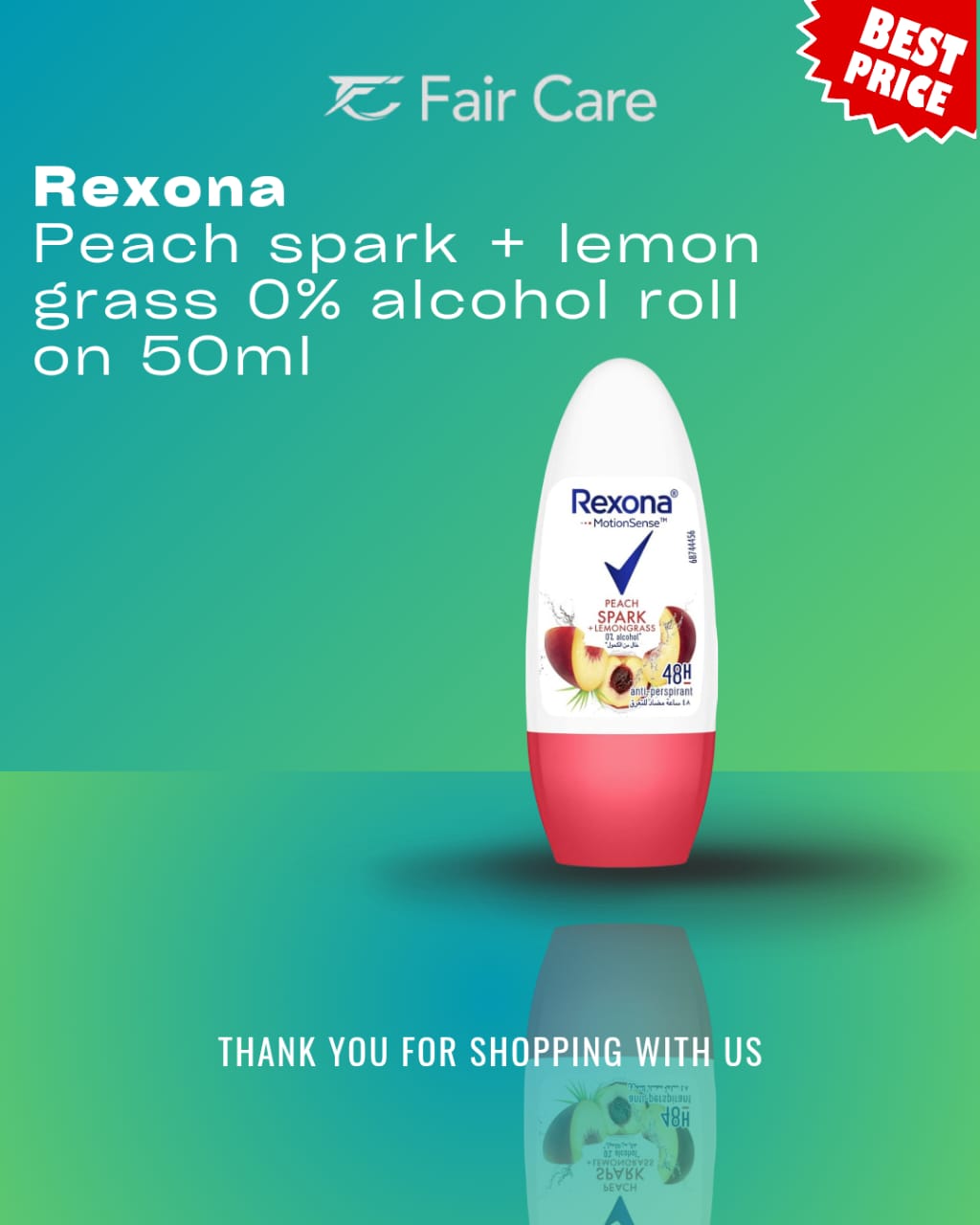 Rexona Women Roll On Antiperspirant Peach Spark & Lemongrass 50 Ml.. مفعول التركيبة المنعشة برائحة الخوخ المتلألئ وعشب الليمون مع تقنية موشن سينس لحماية قصوى ضد التعرق ومنح البشرة رائحة حيوية ونعومة فائقة وجفافاً يدوم لثمانٍ وأربعين ساعة بفعالية