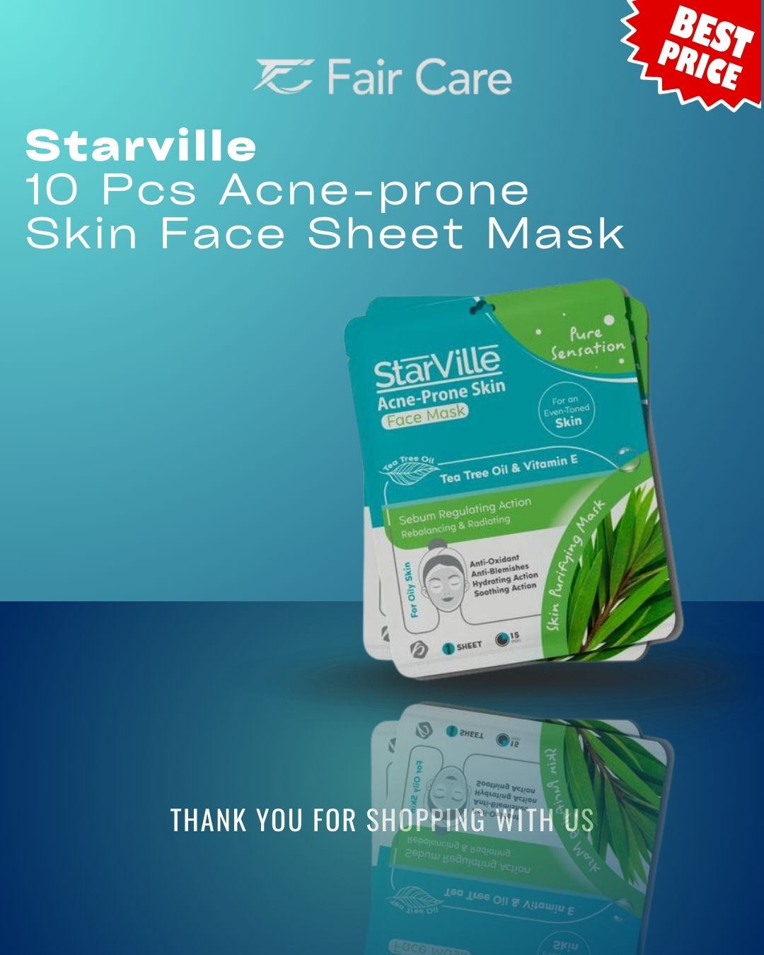 ماسك ورقي للوجه للبشرة المعرضة لحب الشباب من ستارفيل (10 قطع)