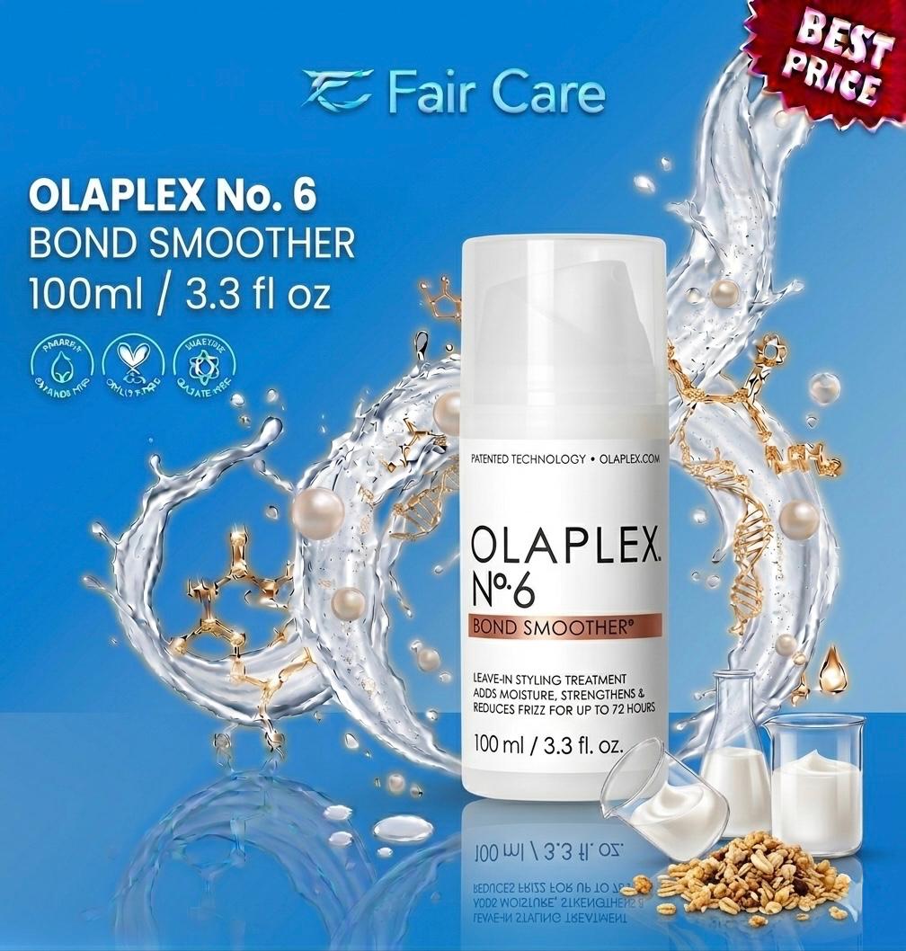 Olaplex No.6 Bond Smoother 100ml.. مفعول التركيبة المتطورة بتقنية بناء الروابط وكريم التصفيف المركز لتنعيم خصلات الشعر بعمق وتقوية الروابط الكبريتية برقة مع منح الشعر نضارة فورية ونعومة فائقة وحماية ممتدة ضد الرطوبة ومنح الشعر مظهراً نقياً وأكثر انسيابية وصفاءً بفعالية